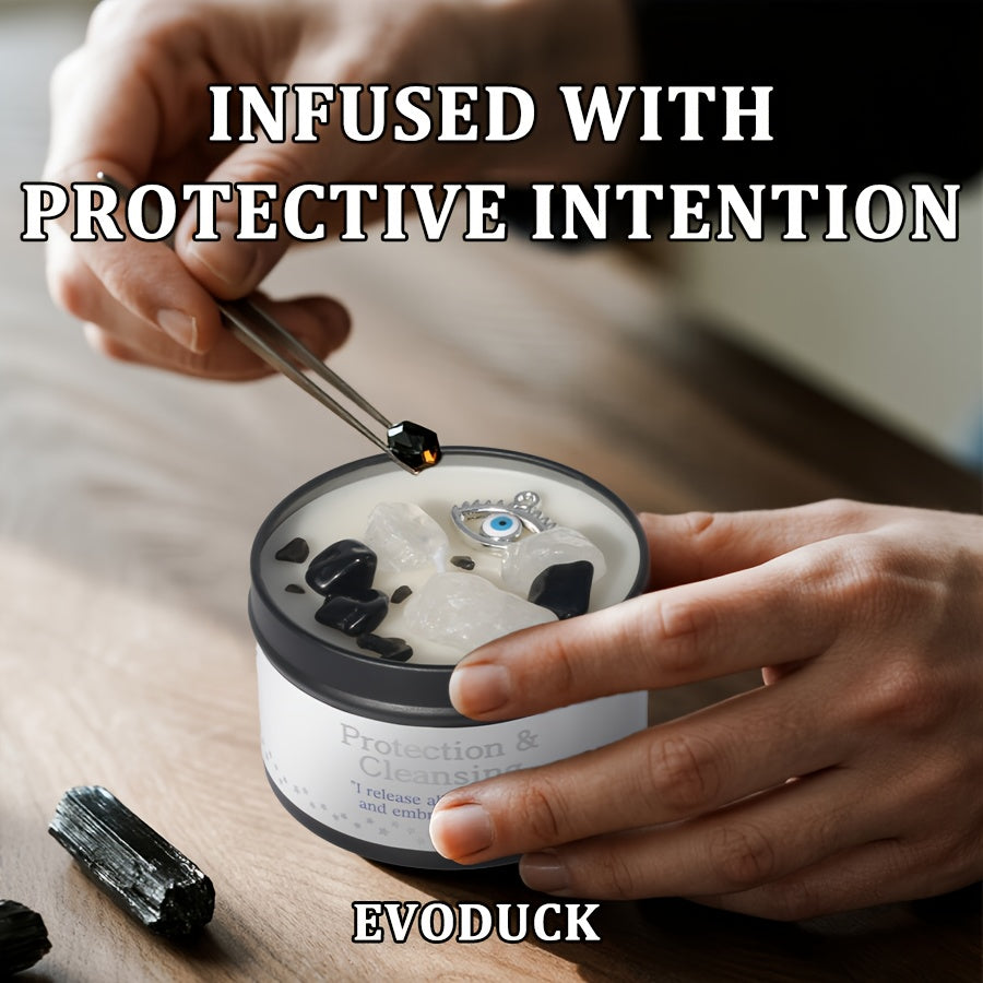 Elevate your manifestation practice and festive decor with the Law Of Attraction Candle White Sage 6oz with Crystal from EVODUCK. This unscented, soy-wax candle combines cleansing white sage energy with a crystal centerpiece to support intention setting, focus, and mindful rituals. Encased in a radiant golden round tank with subtle glitter accents, it adds a touch of elegance to any space while you visualize your goals.