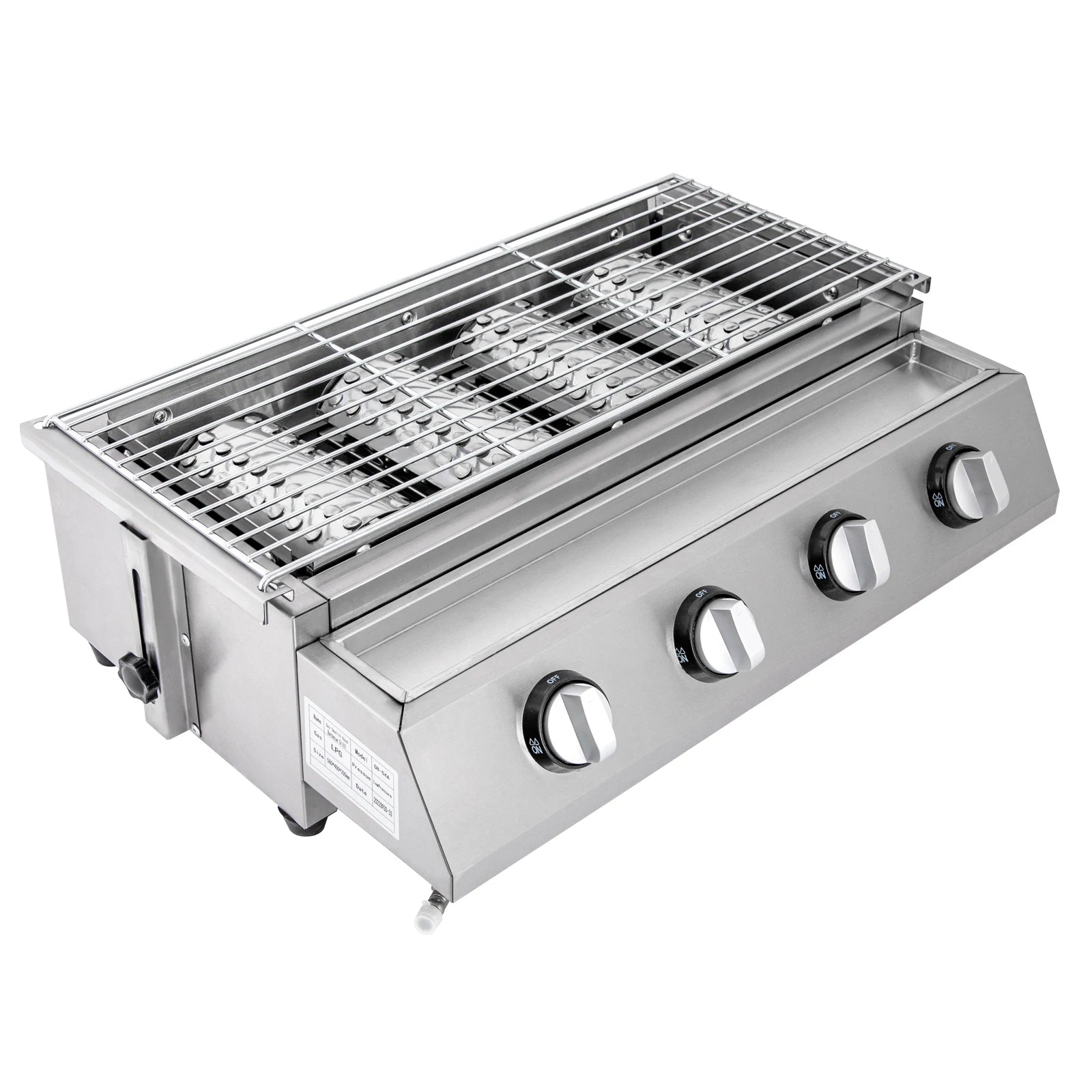Stainless Steel Smokeless Barbecue Grill 4 Burners LPG Gas Grill Portable BBQ Grill Removable for Outdoor Patio Garden