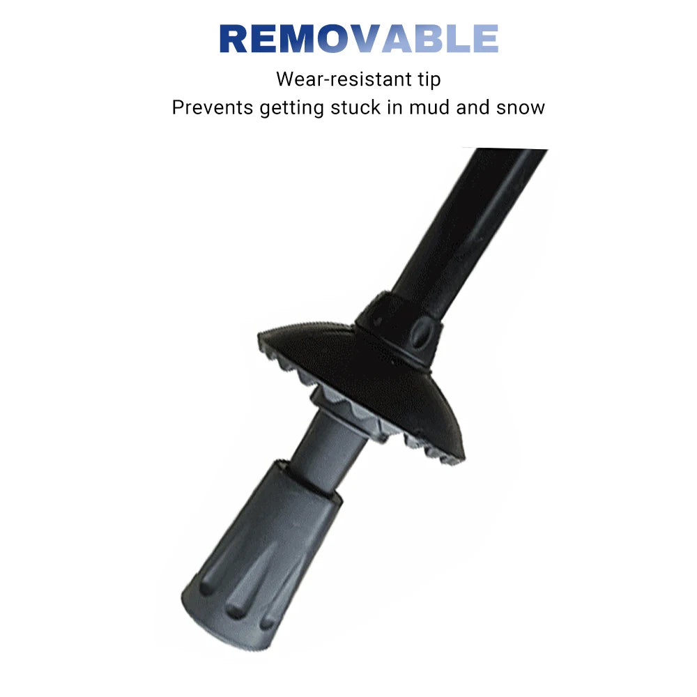 - Ergonomic rubber straight-grip handle provides a secure, comfortable hold during long hikes.