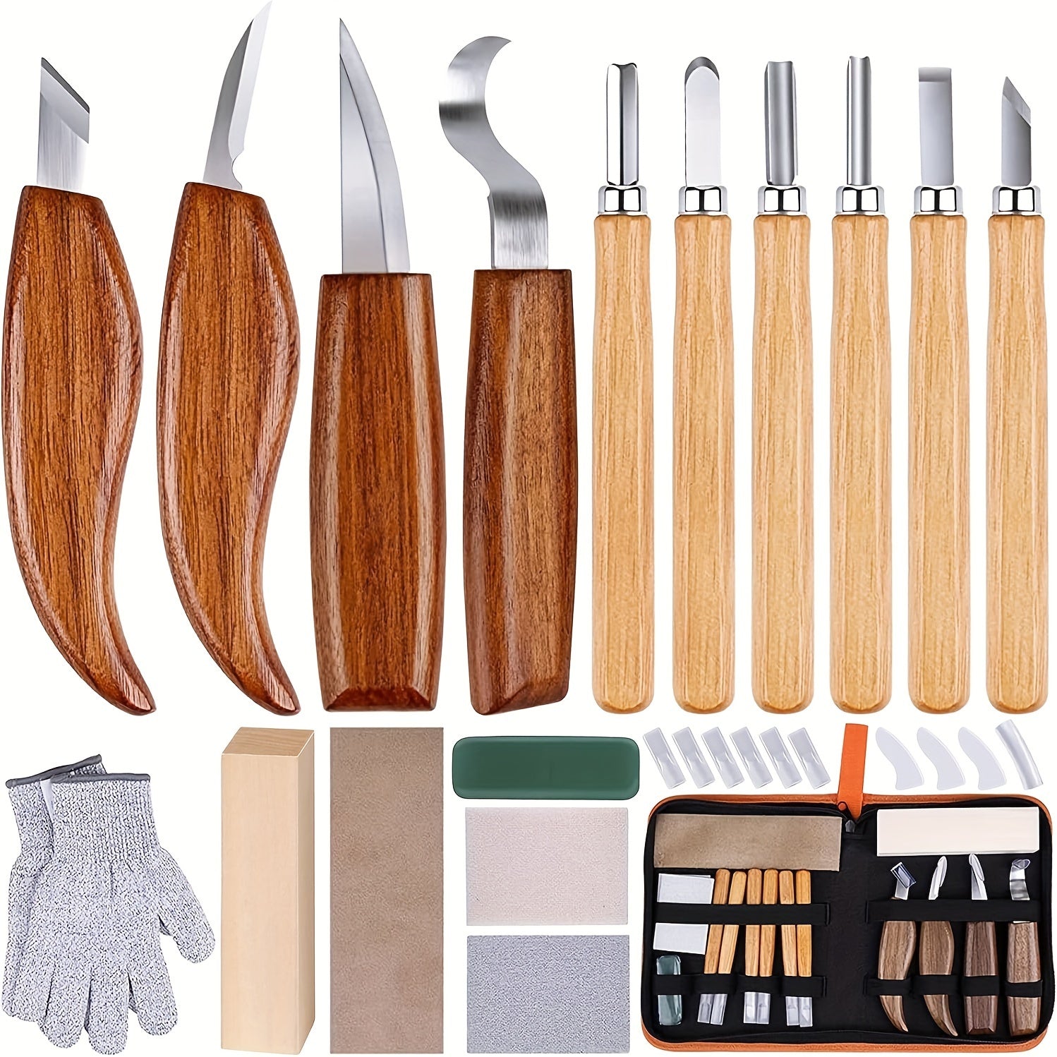 - Anti-slip cut-resistant gloves included for hand protection during carving sessions.